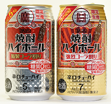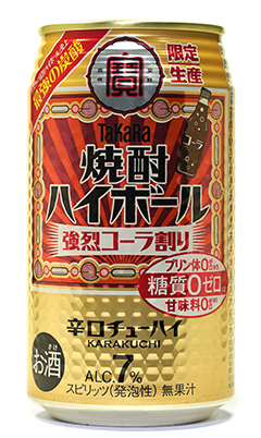 2025年12月9日に限定発売されたタカラ「焼酎ハイボール」の数量限定コーラフレーバー。 同シリーズの限定コーラフレーバーは2025年3月11日につづいて2度目だが、前作と比べてあらゆる点がアップグレードされている。アルコール度数は5%から7%に上昇し、炭酸も大幅に強化。同シリーズの強炭酸品のみに許される「強烈」の称号を冠する。パッケージは基本デザインや雑なコーラ瓶のイラストは踏襲しながらも、缶の色が銀色から金色になりシボパターンも楕円から六角形に変更されている。→ 缶比較 「辛口ドライテイスト」のうたい文句通りの甘みの少ないドライなハイボールで、ガツンとした焼酎の味と刺激のあとにコーラの風味が香る。スパイスエイキスを使用しているがコーラフレーバーにはあまり特徴はなかった。ウィスキーやバーボン系コーラRTDのような甘さや重厚感はなく、切れ味鋭いシャープで無機的な印象を受ける一品だった。 |